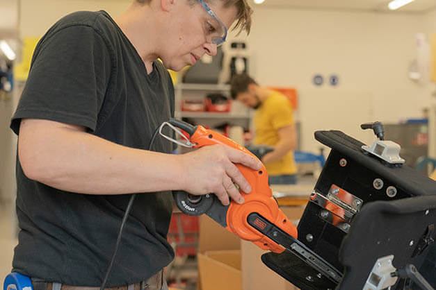 Menschen in der Rehabilitationstechnik arbeiten mit hohem technischem und anatomischem Wissen, um standardisierte, oder individuell angepasste Produkte herzustellen zu können. Je nach Einsatzgebiet, kommen verschiedenste Materialien zum Einsatz. Diese reichen von Stahl bis Weichschaum.